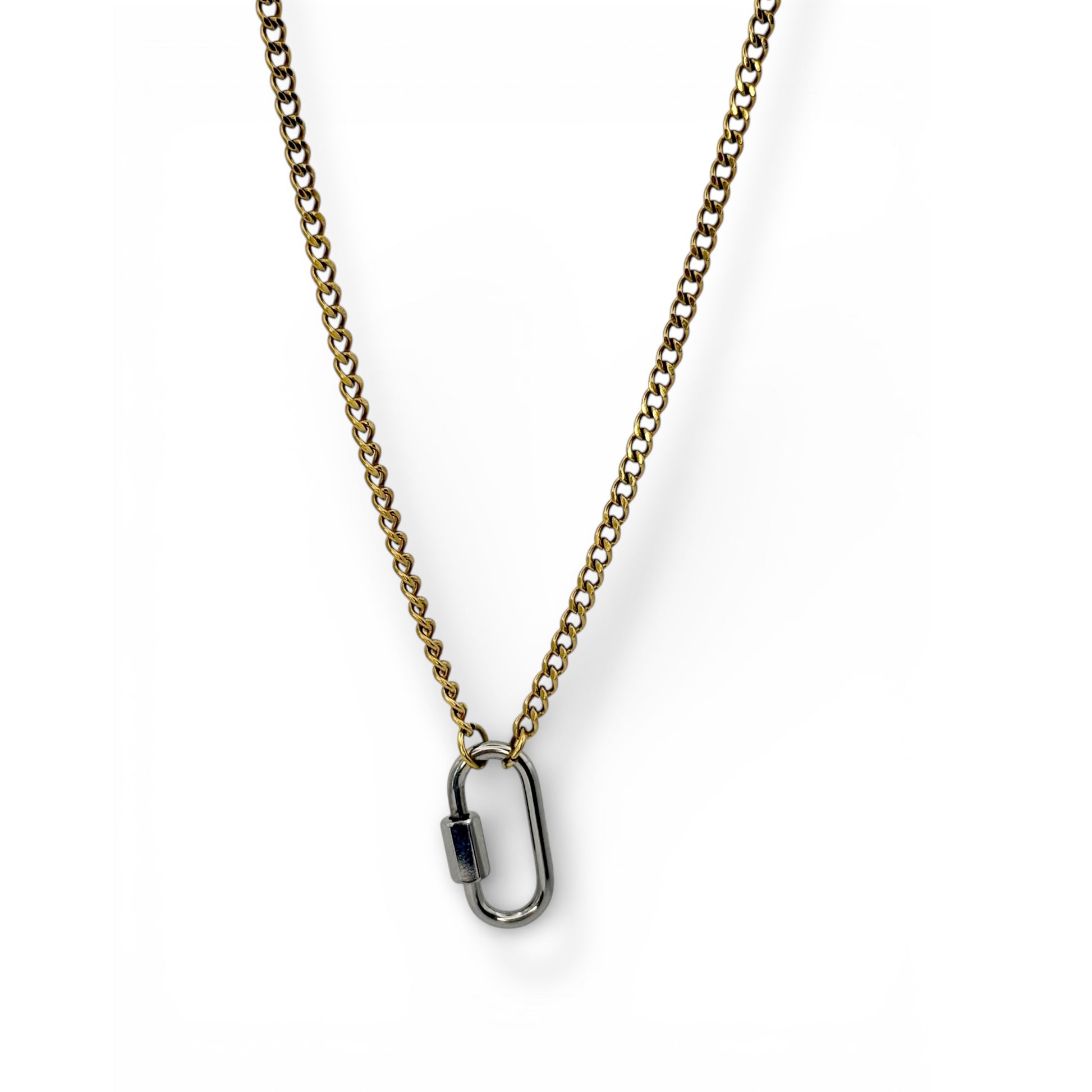 Bicolor-Kette: Goldkette mit silbernem Karbainer.