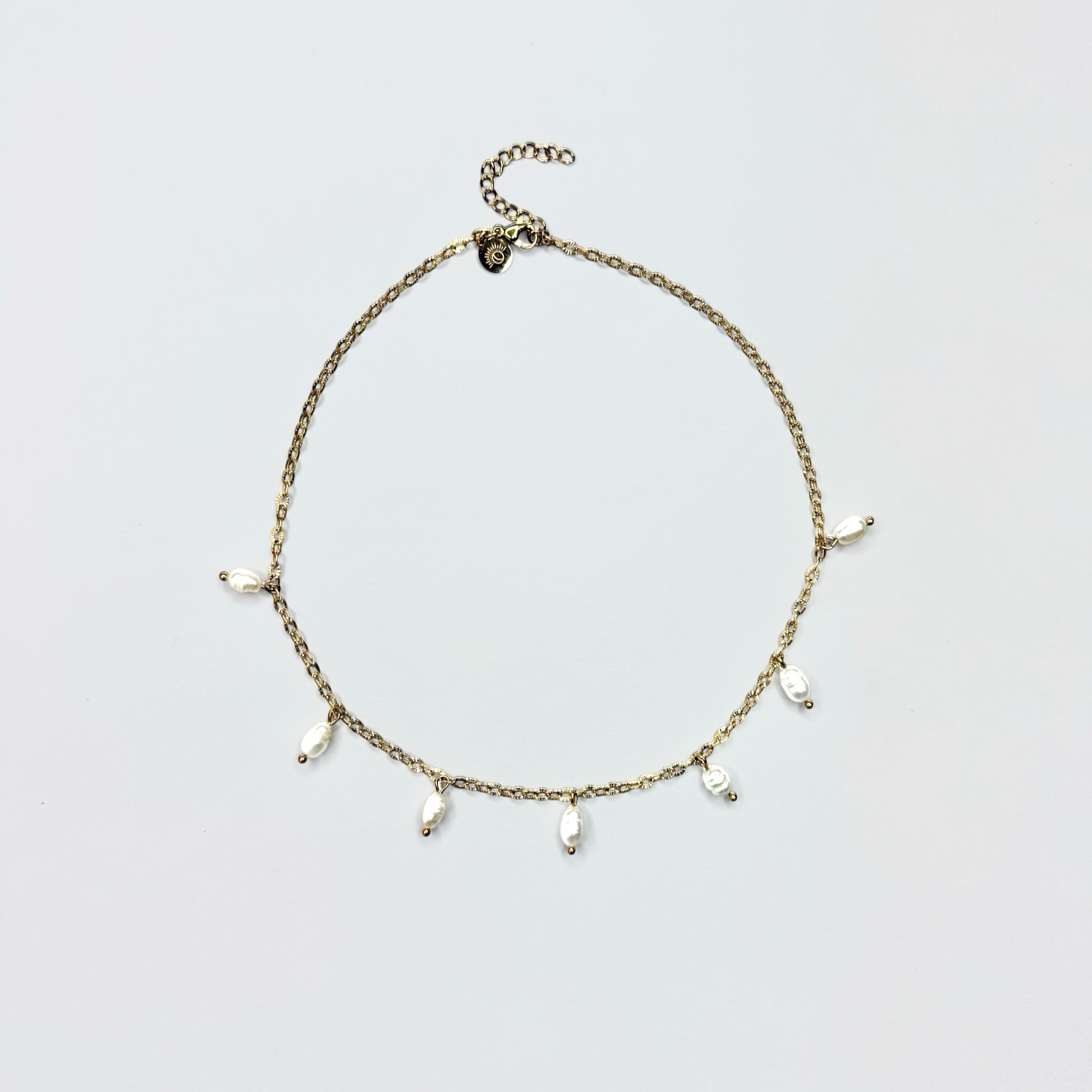 Wie vom Wind getragen, schwingen die zarten Perlen dieser Kette mit jeder Bewegung. Ihre unregelmäßige Form macht jedes Stück einzigartig – wie kleine Tropfen des Meeres, eingefangen in einem Moment aus Gold. Pearl Drift steht für Leichtigkeit, Natürlichkeit und zeitlosen Stil – ideal für alle, die dezente Eleganz mit einem Hauch von Verspieltheit lieben.